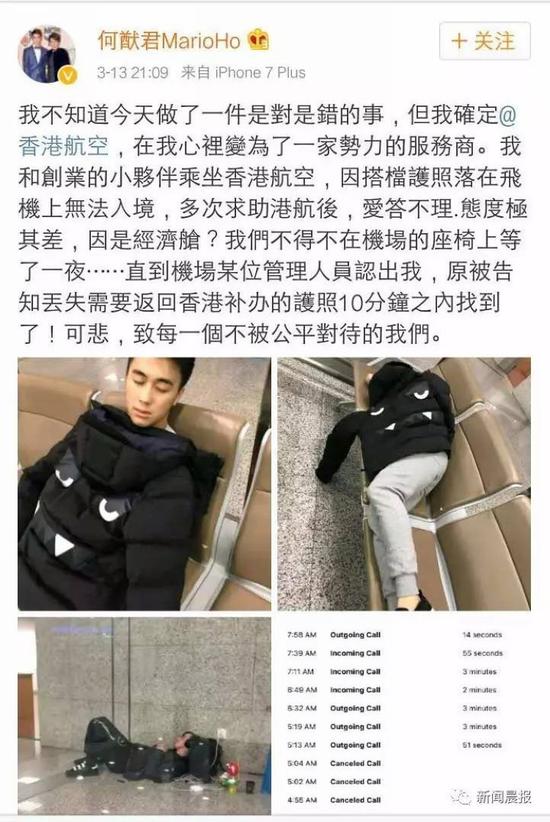 这件事一度成为今天微博热搜榜的首位,毕竟何鸿燊的儿子坐经济舱就足够吸引大家的关注,而他的经历正是我们普通人最容易遇到的情况,网友们都很有话要说。