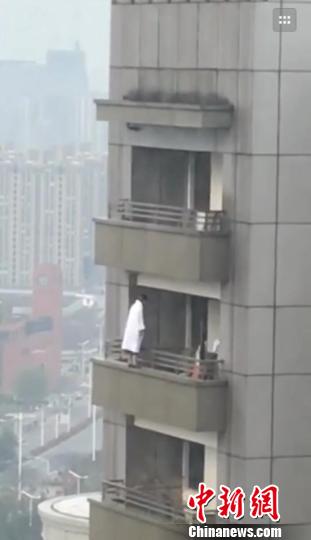 南京一年轻女子因感情问题,裹浴衣29楼上欲轻生。申冉摄