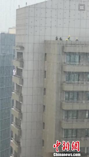 南京一年轻女子因感情问题,裹浴衣29楼上欲轻生。申冉摄