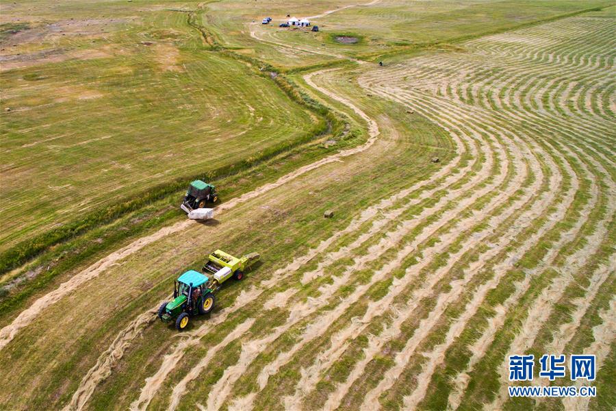近日,新疆哈密巴里坤哈萨克自治县天然草场进入收割期,牧民忙着收割为牲畜过冬做准备。