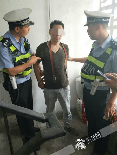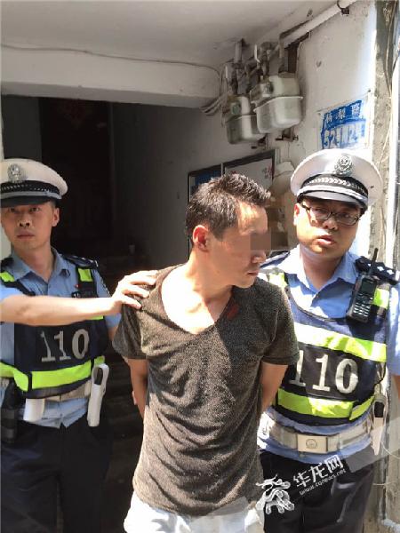 在居民楼抓住嫌疑男子之后,民警对其进行讯问。沙坪坝警方供图华龙网发