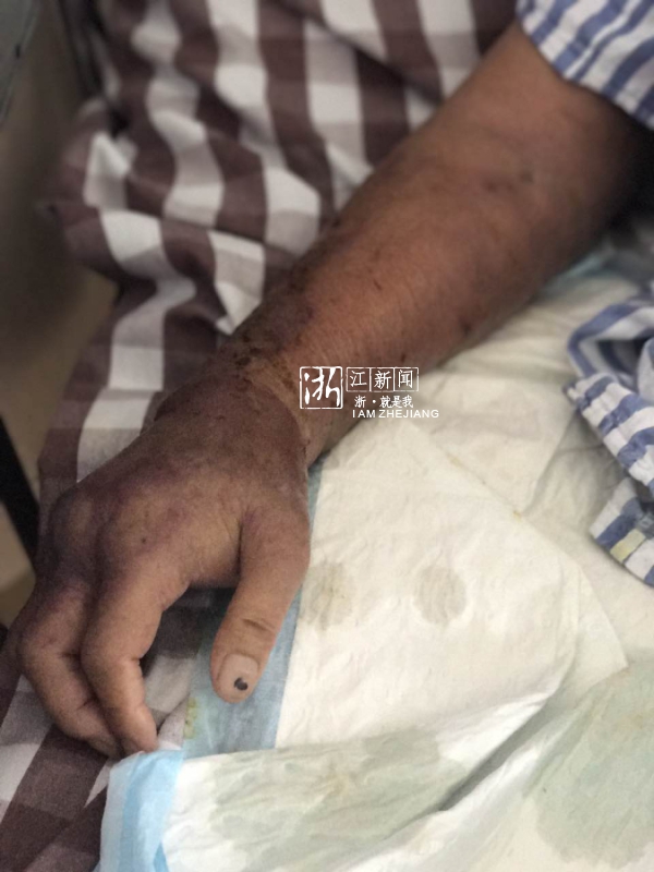 黄大妈本来身体底子就不好,她有10年的尿毒症病史,一直在做血液透析治疗,而且心脏也不好,四五年前查出房颤。这次扎伤的部位是右手,刚好是她进行血液透析置管的那只手,本身血管通路不大好。可能这些因素综合影响,导致一只明虾就能使她严重感染。