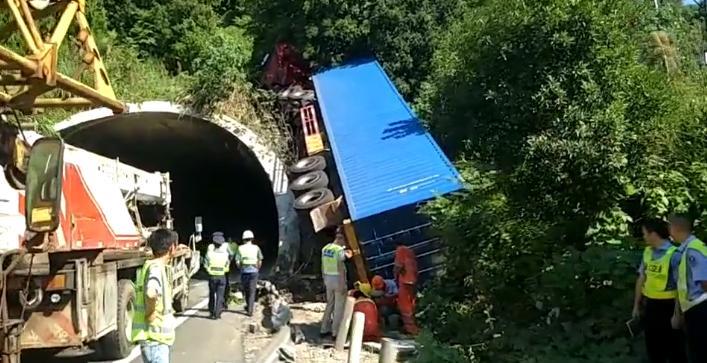 早晨6时30分许,台州高速交警监控中心接到过路司机报警称,在G15沈海高速麻岙岭隧道口有一辆集装箱撞山了。接警后,高速交警立即组织施救力量前往现场。