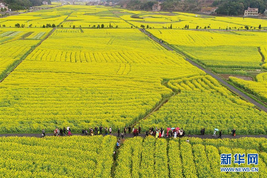 3月4日,游客在湖南省衡阳县库宗桥镇的油菜花海里游玩。新华社发(曹正平摄)