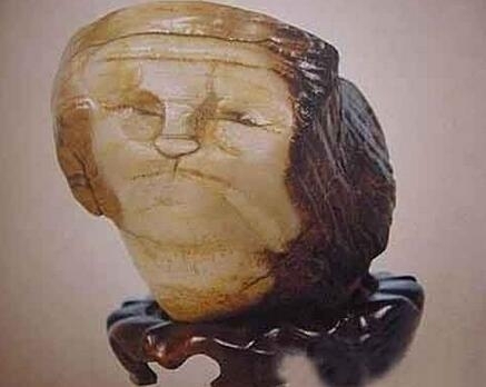 这块奇石约为成人拳头大小,酷似一位西洋老妇人头像,鼻子、嘴巴、额头上的皱纹、头发宛如真人。