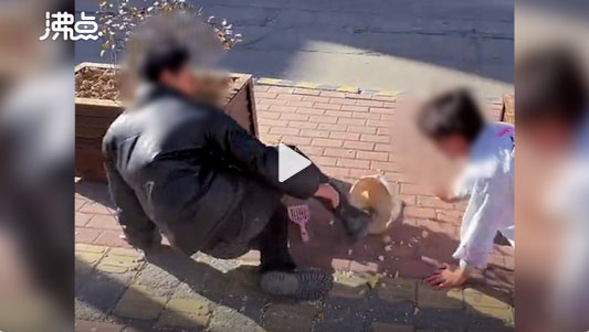 两男子为拍视频街头扮狗夺食 狗招谁惹谁了?
