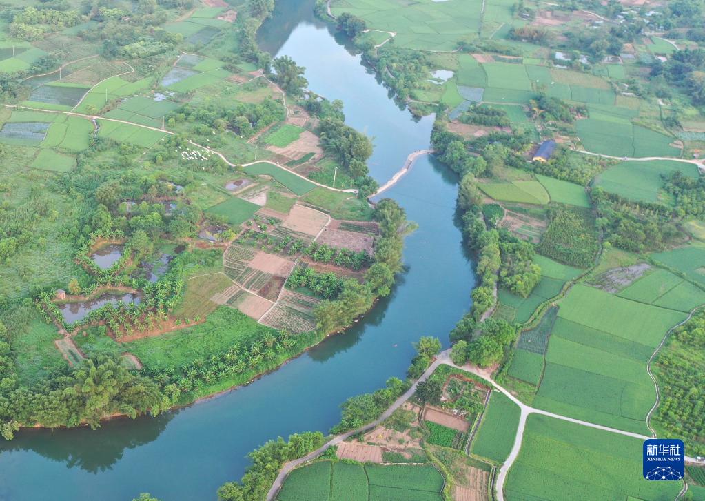 时下,广西桂林市阳朔县遇龙河沿岸山清水碧,草木葱郁,在蓝天白云掩映下,一派生机盎然景象。