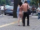 东莞小情侣街头吵架 当众脱光衣服裸奔
