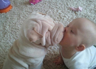 宝宝与萌宠爆笑亲吻“互咬”瞬间