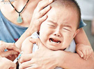 小宝宝打针时哭闹不止 妈妈说“收”立刻停止