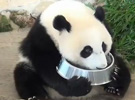 实拍熊猫对牛奶恋恋不舍 死抱奶盆管理员无奈