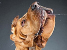 慢镜头下呈现小狗甩头 有长发飘飘有口水乱飞