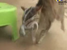 实拍“淡定”八爪章鱼智斗馋嘴猫咪