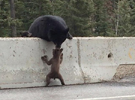 实拍“熊孩子”呆坐公路边 被熊妈一口叼回去