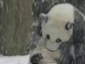 大熊猫“宝宝”初见雪 打滚摔跤停不下来